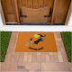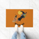 Doormat divertido de Halloween con un colorido ilustracion original de una bruja que pasaba de luna llena en una escoba con un gato negro y una linterna Jack-o'. ¡Mucha diversión de Halloween!
