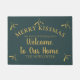 Torrente de navidades festivos con mistletoe de oro en un verde verde azulado profundo. Añade tu propio lema gracioso y nombre familiar, ¡dije Merry Kissmas!