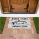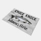 Un gracioso alfombra de bienvenida de pesca de salmón con un divertido juego de palabras. Ya basta, Salmon está aquí.
