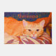 Gracioso, lindo y brillante naranja tabby cat alfombra de bienvenida. Fotografía pintada digitalmente. Un gato naranja brillante con ojos naranjas y marrones. Un gato malicioso tendido. Cobre, colores jengibre. Trato personalizado para los amantes del gato. Personalizar tu nombre. Cambie el estilo, el tamaño, el color o quite el tipo de letra si lo desea. Buscar elementos coincidentes en mi colección de tiendas. Derechos de imagen de Marg Seregelyi Photography.