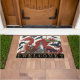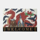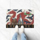 Gales Bienvenidos a Doormat, que presenta arte moderno con bandera galesa patriótica junto con un gran dragón rojo, mago Merlin, cuervos y oso viking al estilo Art Nouveau. Original invierno blanco, divertido alfombra de casa para cualquier ocasión. Texto de "bienvenida" fácilmente personalizar.