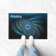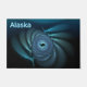 Una imagen fractal de tono azul que se asemeja a un grupo de ballenas en espiral bajo el hielo polar; tal vez ballenas beluga o minke que frecuentan los polos. El texto que dice "Alaska" aparece en azul brillante.