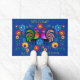 Felpudo Gallos coloridos y flores del arte popular de
