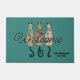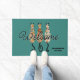 Gatos bohemios bienvenidos | Estos tres gatos con motivos bohemios acogerán a sus invitados y los dejarán con una sonrisa. Doormat personalizado con espacio para su apellido y el año establecido. La personalización se elimina fácilmente eliminando todo el texto de las áreas de plantilla si se adapta a sus necesidades. Cada gato está hecho con un patrón de estilo bohemio colorido diferente. Los tres patrones se coordinan maravillosamente. El fondo es un azul verde azulado vibrante.