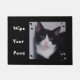 Una estera de puerta de los amantes del gato de la diversión que ofrece un gato blanco y negro lindo del smoking rodeado flotando corazones con las palabras "limpia sus patas!" ¡Modifique este doormat del gato para requisitos particulares de la diversión para su amante preferido del gato!