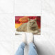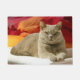 El gato británico del shorthair de la lila con amarillo observa la mentira en la tierra en el dormitorio