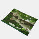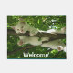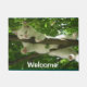 Un gatito blanco tendido en una rama de árbol en medio de frondosas vegetaciones. La piel del gatito es blanca y pura, contrastando con su nariz rosada y sus colchones de pata. Sus ojos son un amarillo llamativo. El gatito está situado sobre una sólida rama de árbol marrón, con hojas que lo rodean, creando un marco natural. La palabra "Bienvenidos" está escrita en negrita y en letras blancas al final de la imagen. La iluminación es suave y natural, destacando las características del gatito y el verde vibrante de las hojas. La composición es equilibrada, con el gatito como foco central, rodeado por los elementos naturales del árbol.
