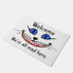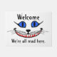 Doormat con la imagen de Gato Cheshire de Alicia en el País de las Maravillas con las palabras: "Bienvenidos, todos estamos locos aquí".