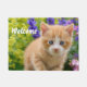Un bonito gatito sobre una roca en un jardín florido. Un lindo y joven gato bebé de color rojizo con maravillosos ojos azules, foto tomada por Katho Menden. Este Doormat Welcome es una idea de regalo para los amantes de los gatos y las mascotas. http://www.zazzle.com/kathom_photo - Personalízalo con tu nombre o texto. — Si está viendo un diseño que no está disponible en su producto deseado, por favor no dude en contactarme a través de mi tienda y le crearé el producto lo antes posible.