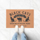 Decoración para Halloween al estilo rústico de una casa de campo con este bonito felpudo de estilo vintage. El diseño personalizado incluye "Gatos negros en venta aquí, poderes sobrenaturales garantizados" en letras de estilo vintage con tres ilustraciones de silueta de gatos y tu apellido debajo.
