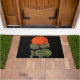 Este doormat presenta un audaz diseño floral. Un geranio rojo contra fondo negro. Gran sensación de verano en el campo.