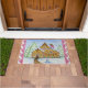 Una bonita casa de jengibre decora este festivo felpudo. El diseño es de arte original.