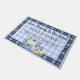 El Blue Gingham Plaid Fall Doormat es un lugar ideal para relajarse y disfrutar de la moda rústica. Con un fondo de gingham azul claro y blanco con un borde de manto azul marino y blanco, este personalizado es ideal para una decoración de otoño cristiana o para decoraciones de porche de Acción de Gracias. Un encantador ilustracion acuático de calabazas azules, verde azuladas, crema y naranjas claros realza el ambiente otoñal, mientras que el querido verso de la Biblia, Salmo 136:3, está elegantemente escrito en caligrafía de escritura. La palabra "Bienvenidos" y el apellido de su familia se personalizan en un estilo de letra elegante, lo que convierte a este felpudo en un hermoso y funcional agregado a su entrada a casa. Traiga las vibraciones de otoño con este inspirador felpudo personalizado, perfecto para celebrar la temporada de gratitud.
