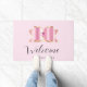 Felpudo Glam Bow rosado con bienvenida al centro de Gemsto