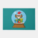Un ilustracion de un globo de nieve con búho santa claus usando un capó rojo y una larga barba blanca con sus tres coloridos regalos para Navidades. Este lindo diseño de lóbulo personalizado kawaii es una idea de regalo para los amantes de las vacaciones de invierno, los amantes de las cúpulas de nieve y los amantes de la Navidad.