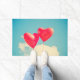 Felpudo Globos del corazón rojo contra cielo nublado