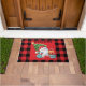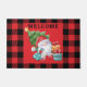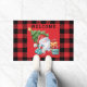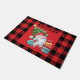 gnomo lindo con árbol de Navidad y cajas de regalo sobre chapa negra y roja de búfalo