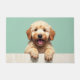 The soft pastel mint background adds a fresh and modern touch, perfect for welcoming entryways. Designed with extra space at the top and bottom, it allows easy personalization with names, welcome messages, or custom text—making it ideal for unique dog-themed doormats and thoughtful gifts.
