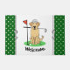 Golf Labrador Retriever - Cute Yellow Lab jugando al golf en el green, con un club de golf en la boca, una pelota de golf y una gorra. Derechos reservados © Angi Laframboise. Graciosos regalos de personalizado de raza de perros relacionados con el golf para los amantes del perro y los golfistas.