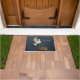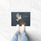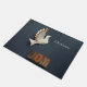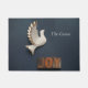 Paloma blanca con la palabra 'alegría' en letras de madera en un fondo azul - agregar tu apellido u otro texto o dejar en blanco