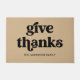 Este sencillo y boho doormat dice "dar gracias" en la tipografía retro negra sobre un fondo neutro de color marrón, y es la manera perfecta de decorar tu casa para tus invitados de Acción de Gracias o Día de Amistad.