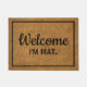 Divertido felpudo con una falsa impresión de textura de coco, y el dicho humorístico "bienvenido soy mat".