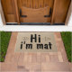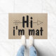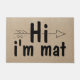 Este gracioso felpudo muestra la frase "Hola soy Mat" en una falda rústica. El divertido y exclusivo regalo de los nuevos propietarios de viviendas.