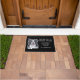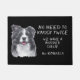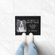"No hay necesidad de llamar dos veces, tenemos un Coliseo Fronterizo" dice este lindo tapete de puerta. El texto es gris plateado en el lado derecho, con una imagen de un borde en blanco y negro en el lado izquierdo. Todo está colocado sobre un fondo negro.