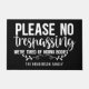 Este humorístico porrazo presenta la imagen de texto "Por favor, sin traspasar estamos cansados de esconder cuerpos", y personalizado con el nombre de su familia en un fondo negro.