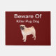 Gracioso hogar mascota casa esteras de bienvenida con un perro Pug gráfico y humorístico diciendo advertencia de perro peligroso de una manera humorística para saludar a los huéspedes de la casa a su casa.