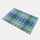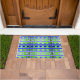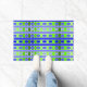 Este doormat tiene un diseño geométrico de líneas en tonos azules y verdes para hacer una manta.