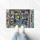 Graffiti, arte urbano callejero colorido doormat interior al aire libre. Moderno, fresco, moderno, pintado diseño de pared de ladrillo de la ciudad decoración casera. Derechos de imagen de Marg Seregelyi Photography.
