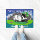 Esta alfombra de la puerta es personalizable con tu nombre en la parte superior. ¡Puedes hacer saber a la gente quién eres antes de que te conozcan! Se destina principalmente a los propietarios de remolques de viaje de diseño moderno, específicamente con dos puertas y dos ejes. Se parece a un Gran Diseño Imagine 2250rk trailer. Es de 24" x 36" y se puede limpiar con agua o con un limpiador de alfombras de aerosol. Se puede usar dentro o fuera del remolque y muestra a la gente que usted está orgulloso de ser dueños del fabuloso remolque en el que usted eligió viajar. Consulte nuestra tienda para ver otros modelos y tamaños de remolques. Se están agregando otras nuevas todo el tiempo. Compruebe también otros productos con el mismo diseño, como tazas, carteras, etc.