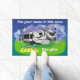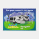 Este felpudo puede ser personalizado para mostrar su nombre en la parte superior. Cuando se usa fuera de tu RV, la gente sabrá con quién está hablando cuando te vean. Este felpudo es ideal, ya que cuenta con una base de goma que no se agrieta ni se dobla, es resistente al desteñido y al moho y se puede limpiar fácilmente con una manguera. Esta versión es una 5ª rueda similar a una Gran Diseño Soledad 310gk. Se puede usar en el interior o en el exterior y hace una excelente alfombra de bienvenida para su camping, donde quiera que vaya. Para personalizar el nombre, haga clic en el texto "ponga su nombre en esta área" y cámbielo a lo que quiera. Si no ves el cambio de texto en el diseño real, no lo has hecho muy bien. Puede que tenga que hacer doble clic en algunos dispositivos para poder cambiarlo. ¡Feliz camping!
