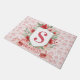 This Christmas door mat design has a preppy grandmillennial design featuring a floral crest surrounded with berries with a monogram letter in the center.