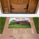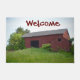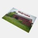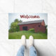 Esta alfombrilla de bienvenida presenta un viejo granero rojo en el país Amish de Pensilvania.