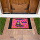 Puedes admirar el dibujo de Año Nuevo de un extraterrestre gris con diseños naranjas y rosas, y el texto dice: "¡Feliz Año Nuevo!" Llamo a este dibujo, "Deseos de Año Nuevo Grises", agregado a esta alfombra de puerta (24" x 36" / 61 cm x 91 cm) para desear a alguien un "Feliz Año Nuevo".