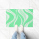 Welcome guests with a fresh natural vibe using this green waves door mat. Featuring a modern wave pattern in layered green tones, this design adds a clean stylish touch to your entryway, perfect for front doors, patios, apartments, dorms, and as a unique housewarming gift.