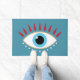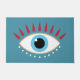 Ilustracion de un mal ojo griego con pestañas rojas.