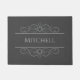 Estera de la puerta delantera con personalizado de desplazamiento gris y plateado con su nombre. Disponible en dos tallas. Se puede cambiar el color de fondo. Se muestra el nombre completo del personalizable, Mitchell. De Heard_.