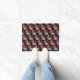 Doormat en un modelo japonés clásico del kimono de grúas estilizadas, dispuesto en un modelo de hexágonos, en gris/gris de color rojo oscuro, ligeros y medios, en un fondo negro