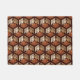 Doormat en un clásico patrón de kimono japonés de grúas estilizadas, dispuestas en un patrón de hexágonos, en bronceado, óxido/terracota y crema, sobre un fondo marrón de chocolate oscuro