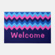Un gran felpudo monogramado con un diseño de patrones vivos y coloridos de chevrones azules y rosas. Cree el regalo personalizado perfecto haciendo clic en el botón "personalizado" para agregar un nombre o mensaje de personalizado en el campo de plantilla proporcionado. Seleccione el vínculo "hacer clic en más personalizar" para cambiar el tipo de letra, el tamaño del texto y más.