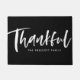 Añada a su decoración de otoño este doormat personalizado de Acción de Gracias. Con un moderno rotulador "agradecido" junto con el nombre de su familia o cualquier texto personalizado, este felpudo está diseñado para coordinar con la colección agradecida de Lea Delaveris Design. También hace un gran regalo de anfitriona.