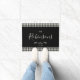 Doormat personalizado con el nombre de su familia en caligrafía de escritura en este moderno y rústico diseño de guarnición de búfalos.