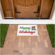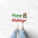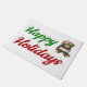 Doormat con felices vacaciones en 3D texto verde y rojo y un oso de peluche con un regalo. Disponible en varios tamaños.