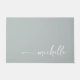 Feminine Elegant Minimalista Sage Green Green Modern Monograma Nombre Script Firma Personalizado Personalizado Doormat. Con el nombre de pila en una letra con letras a mano de bonito, caligrafía de tipo de letra cruz (o tipografía) sobre un fondo verde sabio o verde polvoriento. Gran regalo elegante para el hogar femenino, también para cumpleaños, aniversario, ducha de novia, boda, fiesta de soltera y es para el chica a quien le gustan las cosas minimalistas limpias.