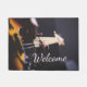 Doormat bajo eléctrico del guitarrista. Las manos del bajista en el cuello de un bajo de encargo. El texto lee la recepción tradicional, pero usted puede cambiarla cualquier cosa que usted tiene gusto. Una recepción maravillosa a su hogar o estudio, o un gran regalo para su bajista, músico o amante de la música preferido.