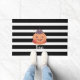 Halloween "Boo" Pumpkin Doormat. This is cute Halloween design in modern black- white stripes.