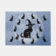 El gato negro central con gorra de brujas, rodeado por versiones más pequeñas.